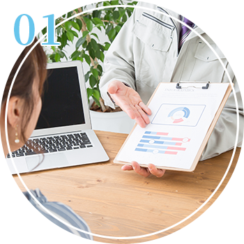 まずはご要望をしっかりヒアリング。そのうえでプロの目線から最適な施工プランをご提案いたします。大阪市生野区の外壁塗装・屋根塗装は、どうぞ当社にお任せください。